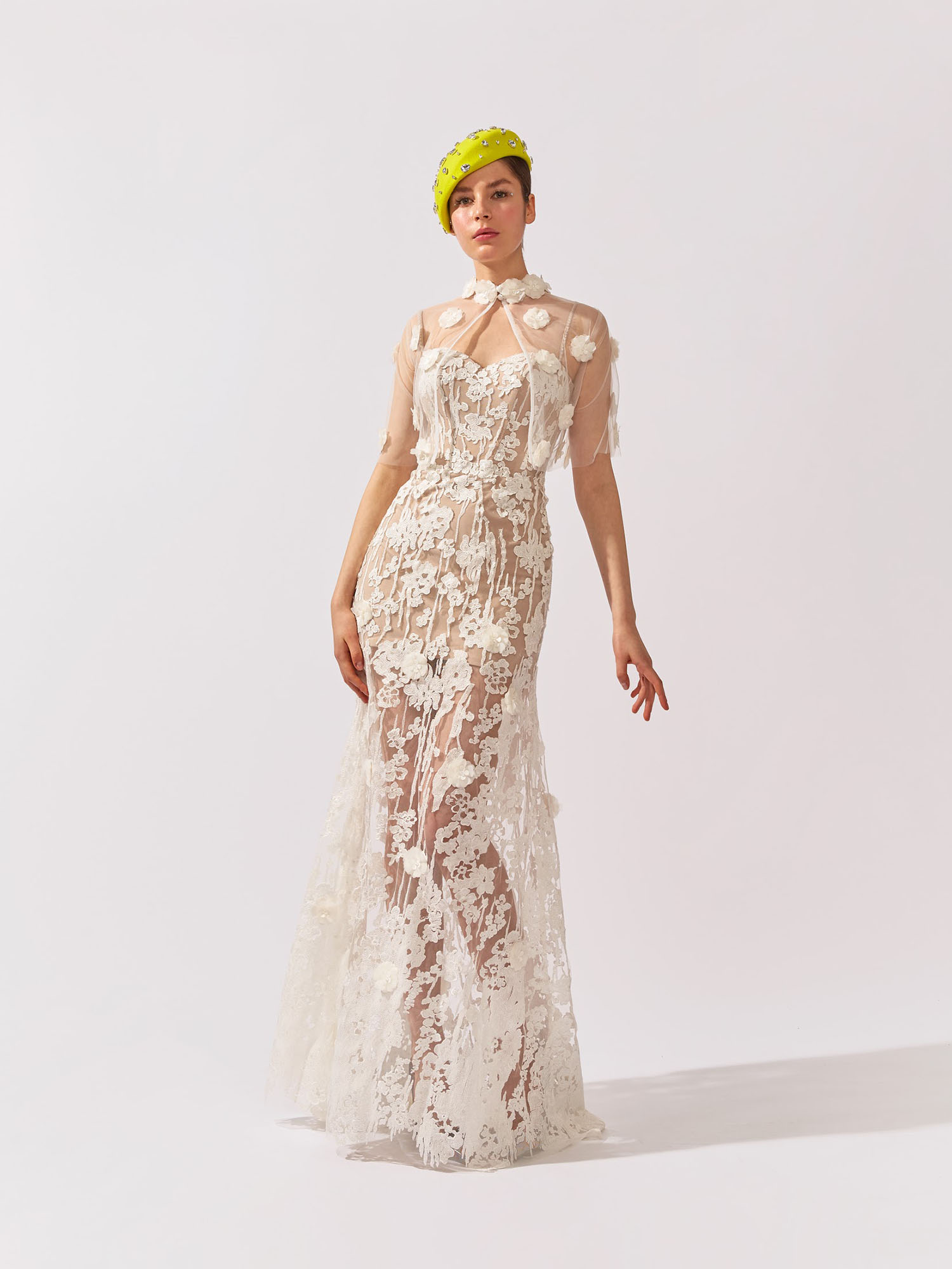 Pentru tine cum arată fericirea? Noi o vedem ilustrată în petale de flori. Rochia Dara cu dantelă în relief și aplicații 3D realizate manual te îmbracă într-o cascadă de fericire.